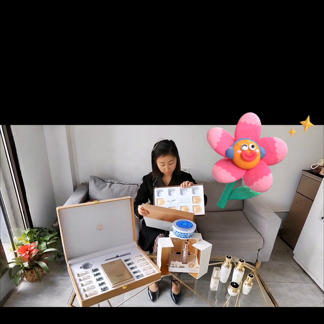 →送一个送一个一个另外还送一个这么大的套盒,专门是做抗衰紧致的,里面都有金粉、有胶原蛋白,刷刷到脸上以后皮肤就会变紧,年轻的三到五岁绝对不成问题。