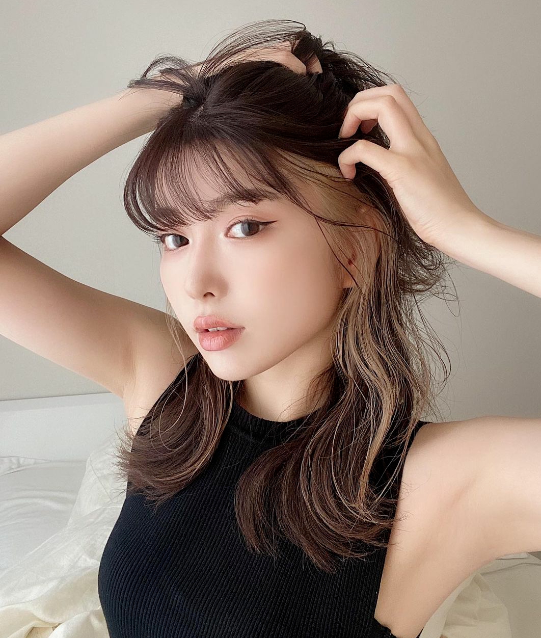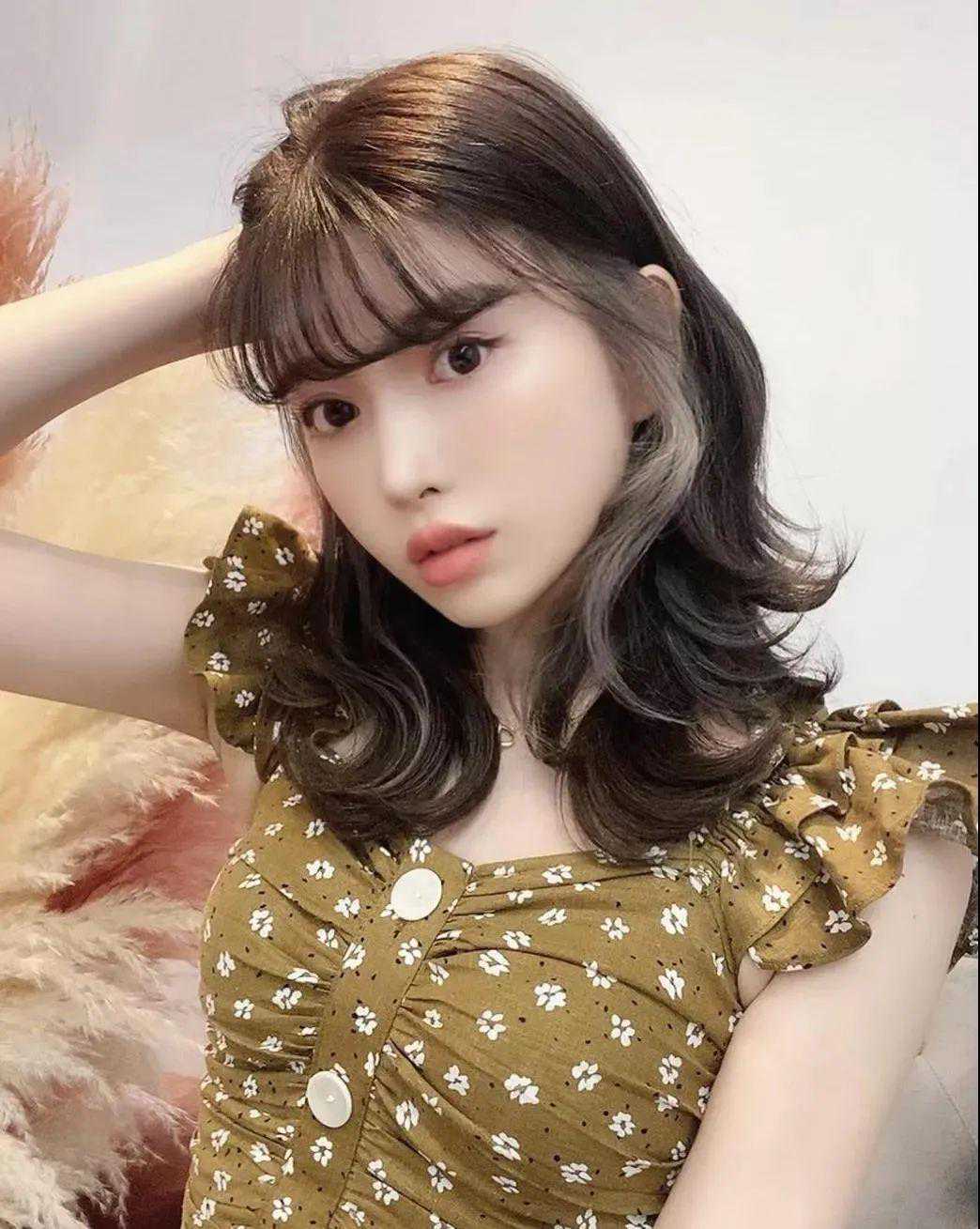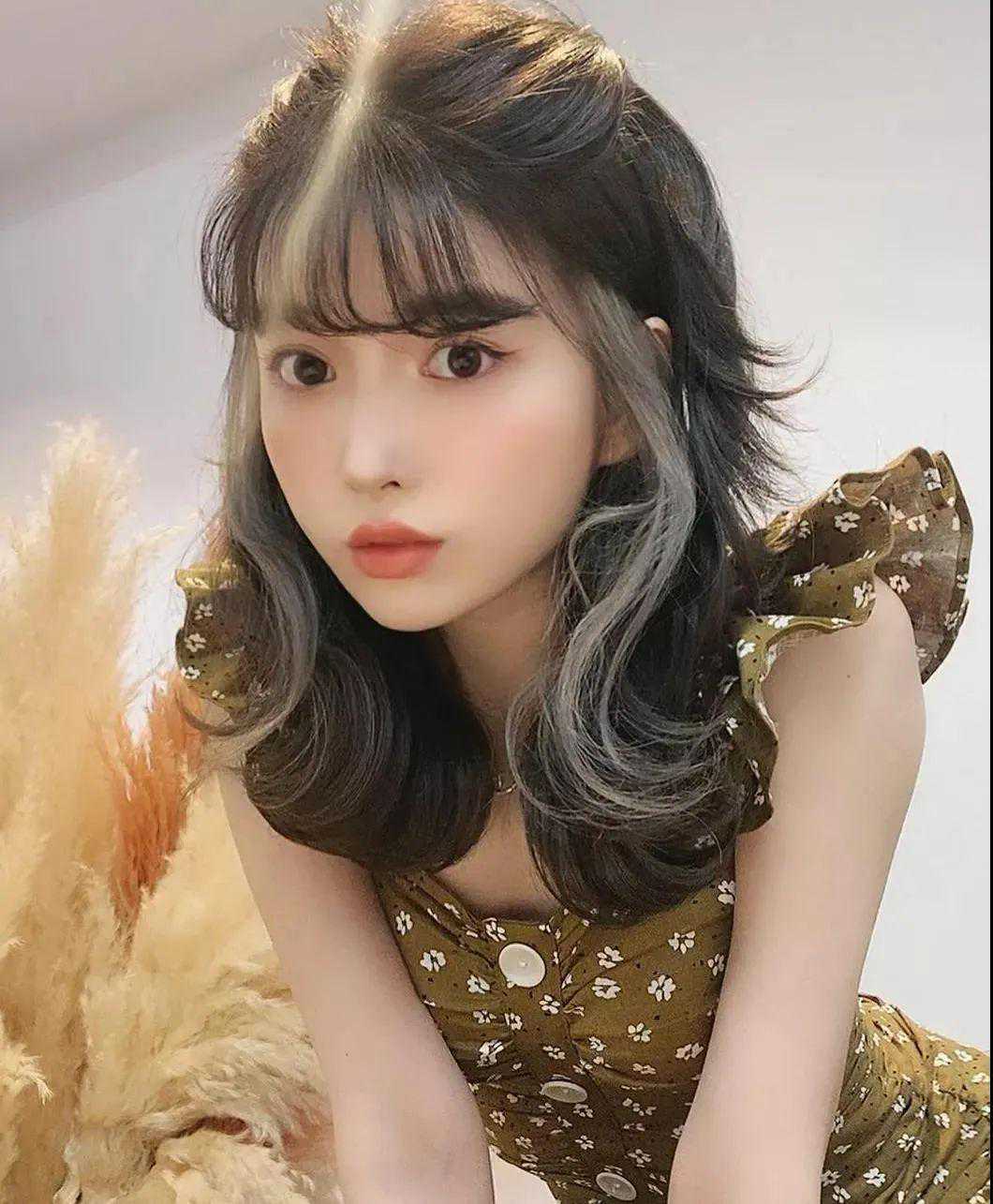 谁说挂耳染一定是有杀伤力的酷妹才能驾驭的,大眼甜妹搭配空气刘海,加上人鱼尾巴的温柔卷,甜度满分,
