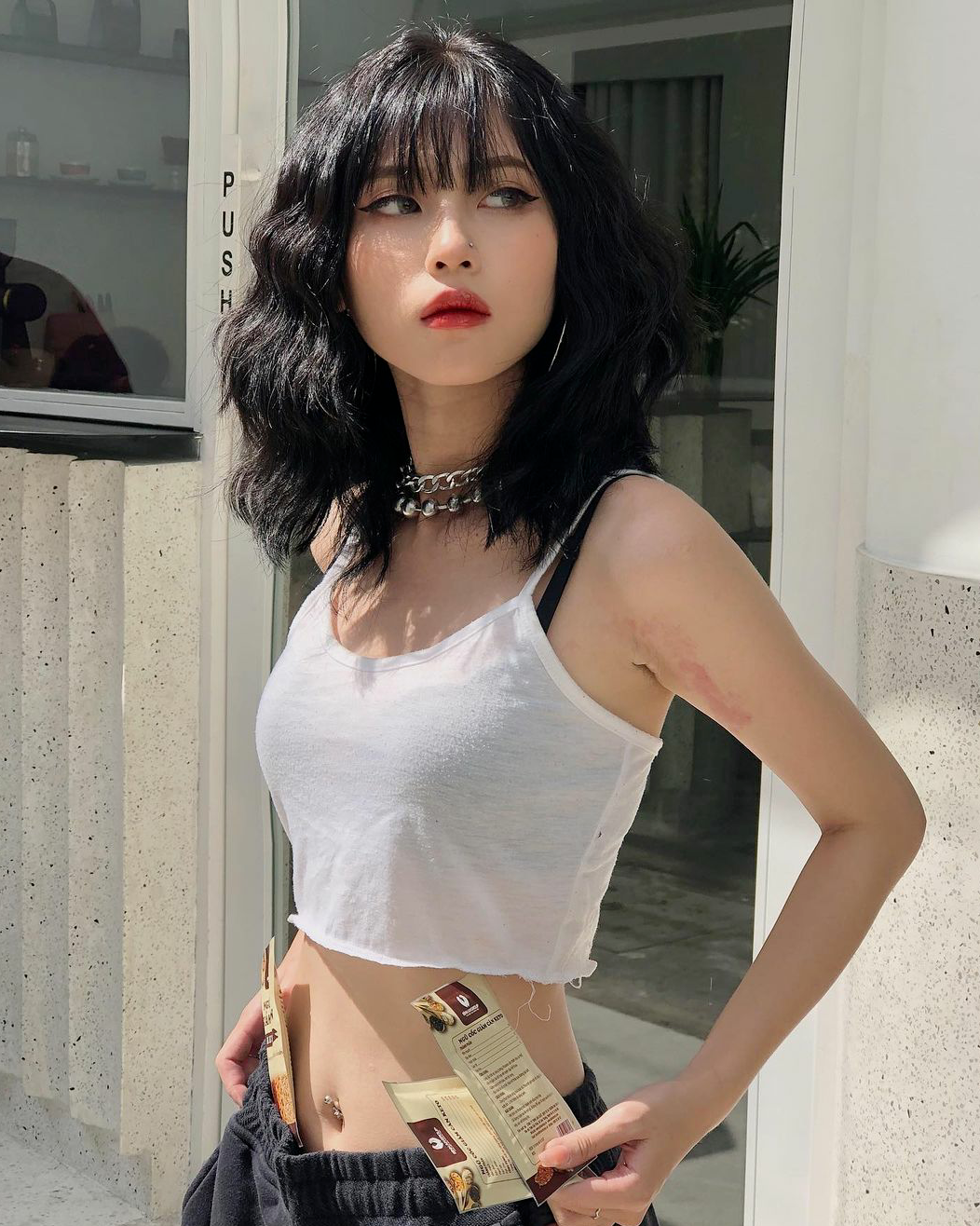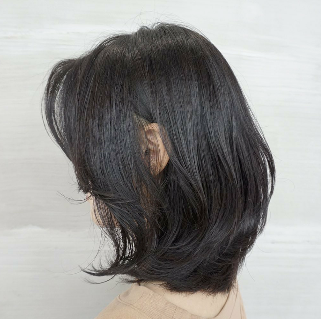 结合今年爆火的漫画刘海选择直发lob。有点长版的lisa同款既视感,但是Lisa的短发造型并不适合大众,中长的lob就很好的中和了这点,偏胖的妹妹也不会显得脖子短了。