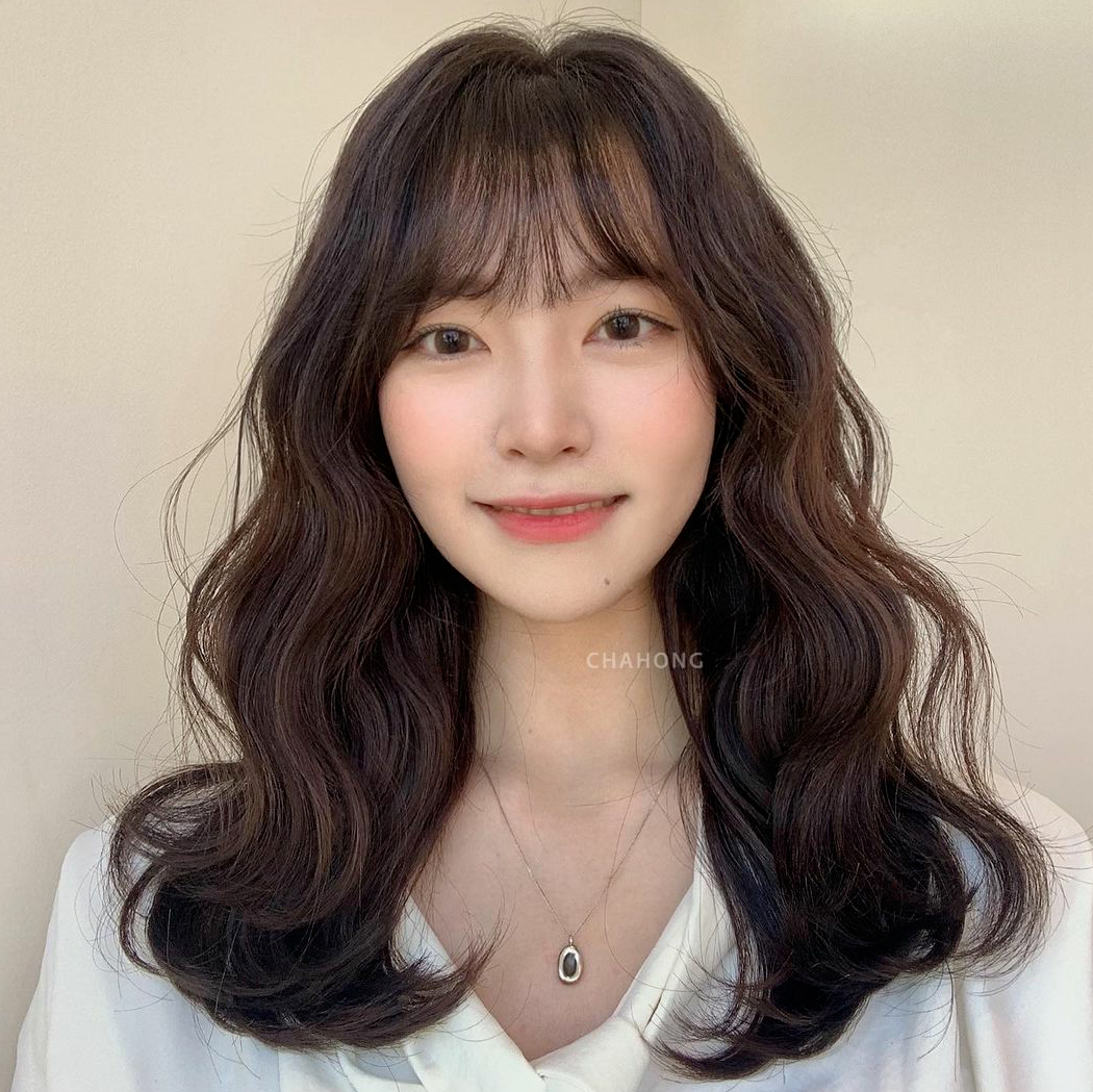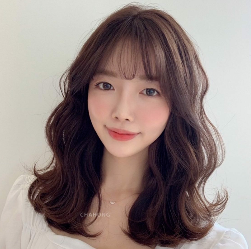 温暖的秋冬发色与大S波浪弧度的蛋蛋卷相结合,是小圆脸妹妹们的福音,可爱减龄,根据不同的脸型选择刘海即可。