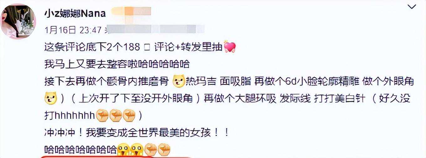 还劝说自己的粉丝想要变美就要积极行动起来,整容能让人自信为什么不做呢?