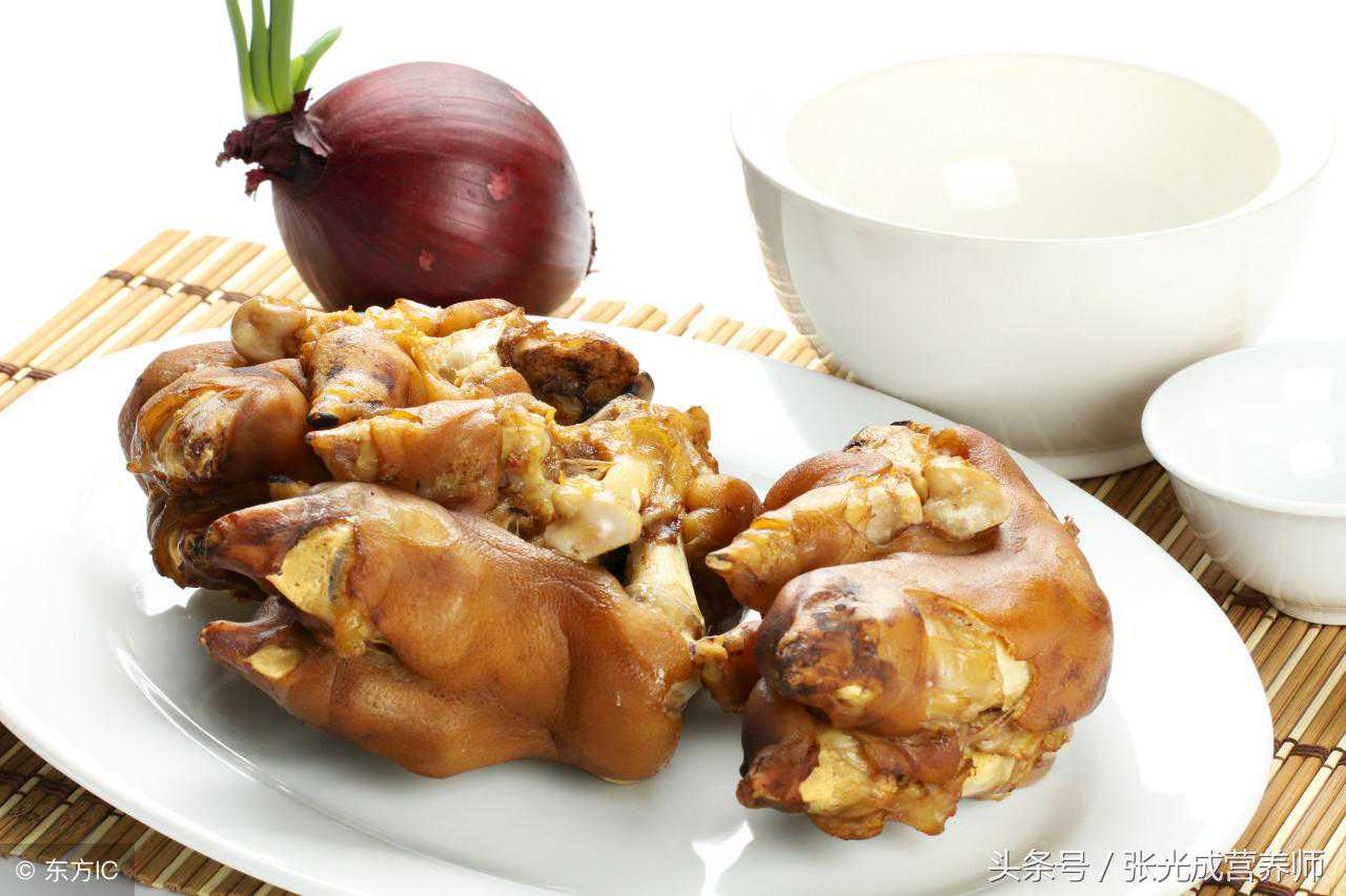 常吃吃猪蹄、羊蹄和牛蹄筋就一定皮肤好?猪蹄、羊蹄和牛蹄筋中含有较多的大分子胶原蛋白,它的吸收率和消化率很低,有一些人本身就是蛋白质缺乏,这种人吃了猪蹄后,所获得的大分子胶原蛋白首先被分配到补充极度缺乏蛋白质的细胞和组织,而不是优先补充到皮肤和毛发等外部组织,因此,有些人会抱怨,吃了半年猪蹄,我怎么皮肤就没有变好了呢,原因很可能是你的身体一直缺乏蛋白质造成的。建议每天摄入不超过100克的畜禽肉,可以常吃,但一天不可多吃。
