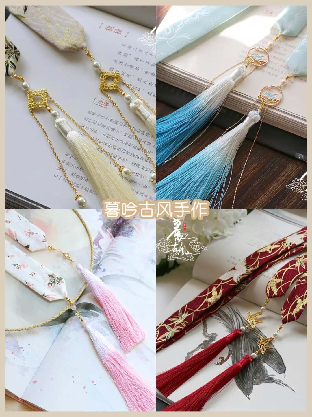 其实暮吟古风手作的发带是最中规中矩的设计,不管是材质还是结构处理,好像都是我们能够想象的。但你以为这样的选择就没有优点了吗?并不是。可以利用它们跟一些气质大气写的汉服搭配,比如飒气女皇风,再用这样的发带就很合适。