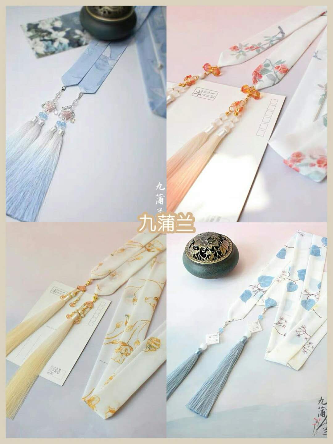 对于喜欢穿简约少女风汉服的集美来说,九蒲兰家的发带真心推荐选择,它们的现代感会更强。可能主要还是因为材质的关系,雪纺的材质给了它们天然独有的气质,加上十分清新干净的色调搭配,以及渐变色系的流苏元素,会让你的整体风格充满灵气。