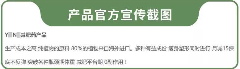 那时还是统一的宣传口径,如“无任何副作用”“绿色安全”、“绝不反弹”、“一天瘦一斤”等,被商家吹上了天。