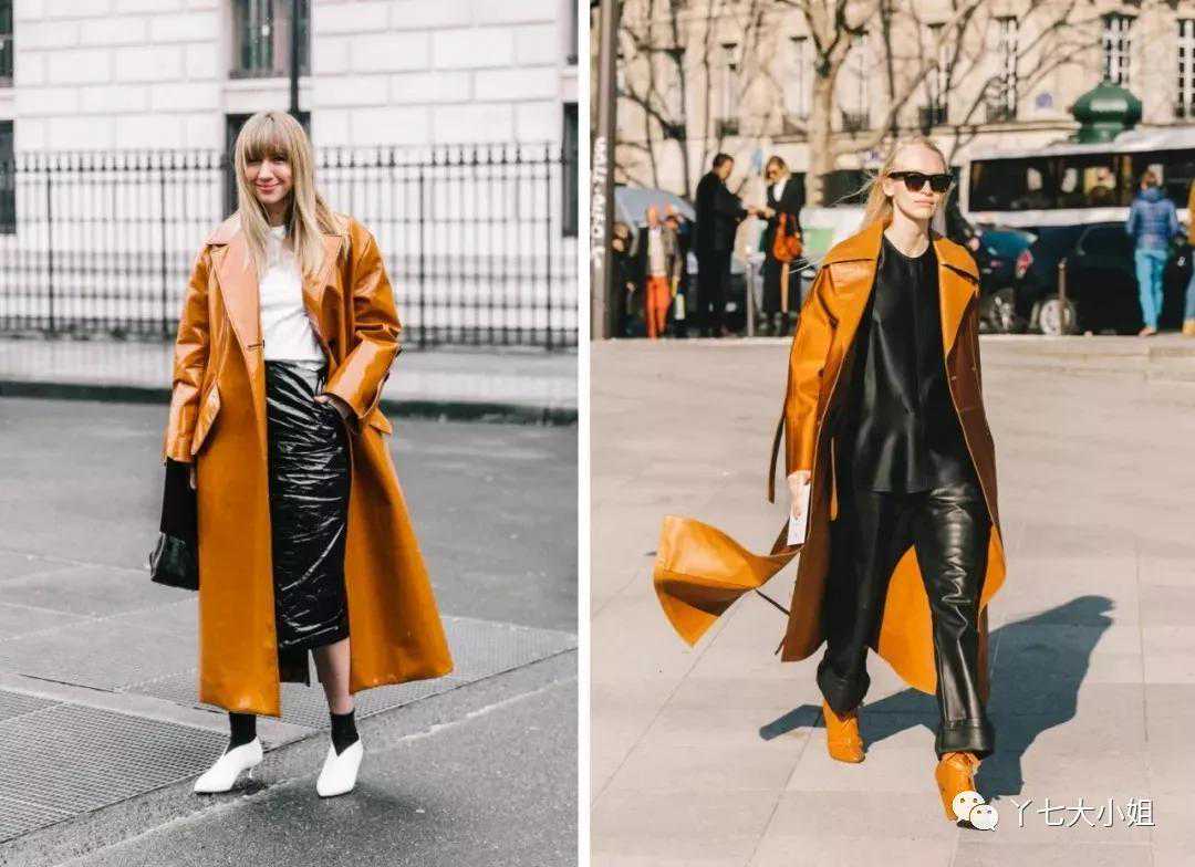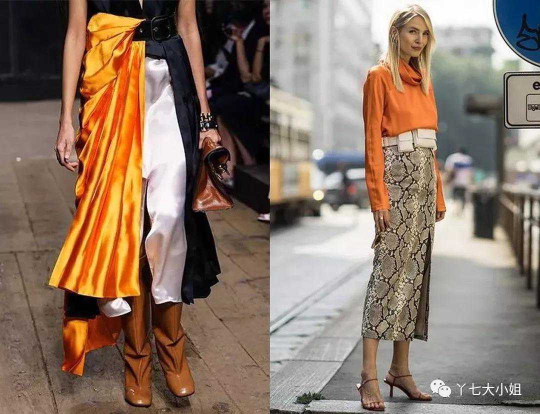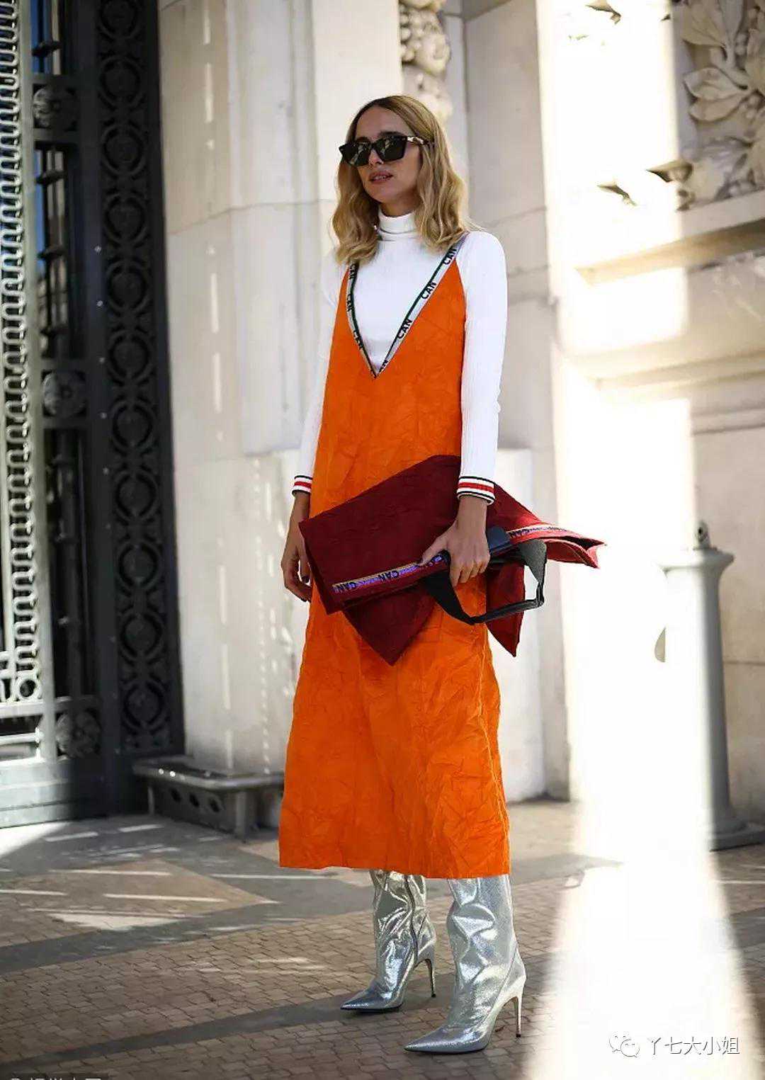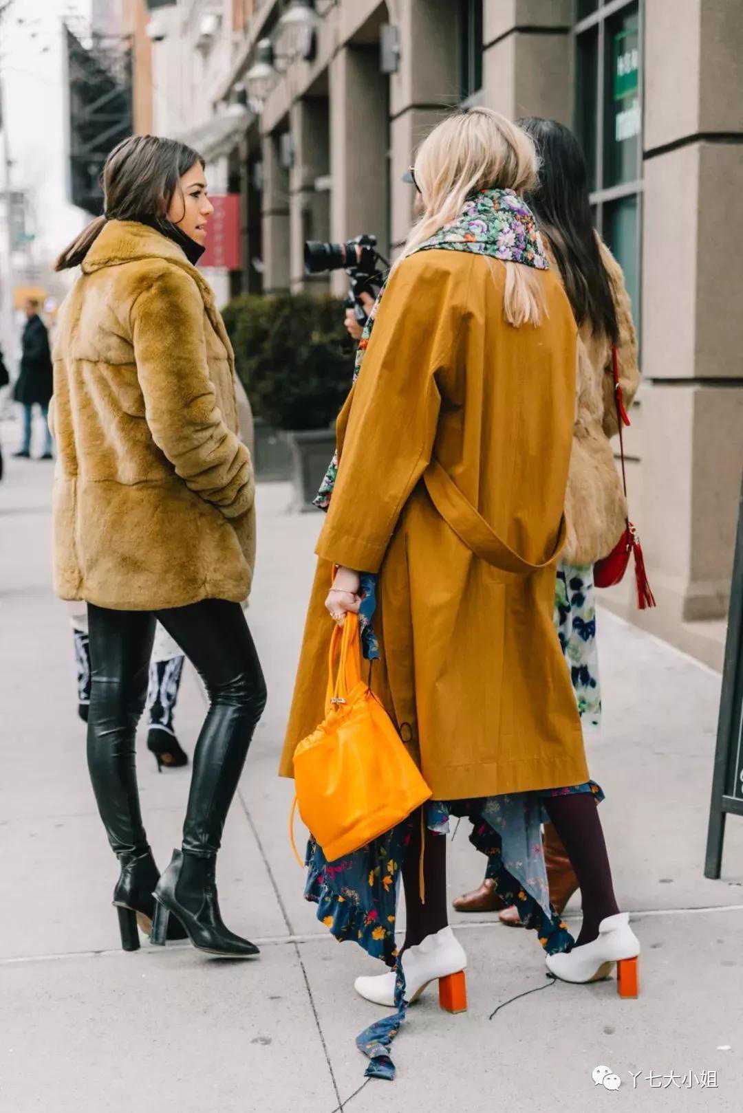 南瓜色在街拍中的表现,也是非常出色的,用在皮衣、大衣、毛衣、裤子、裙子、鞋帽包包上都非常精彩。▼