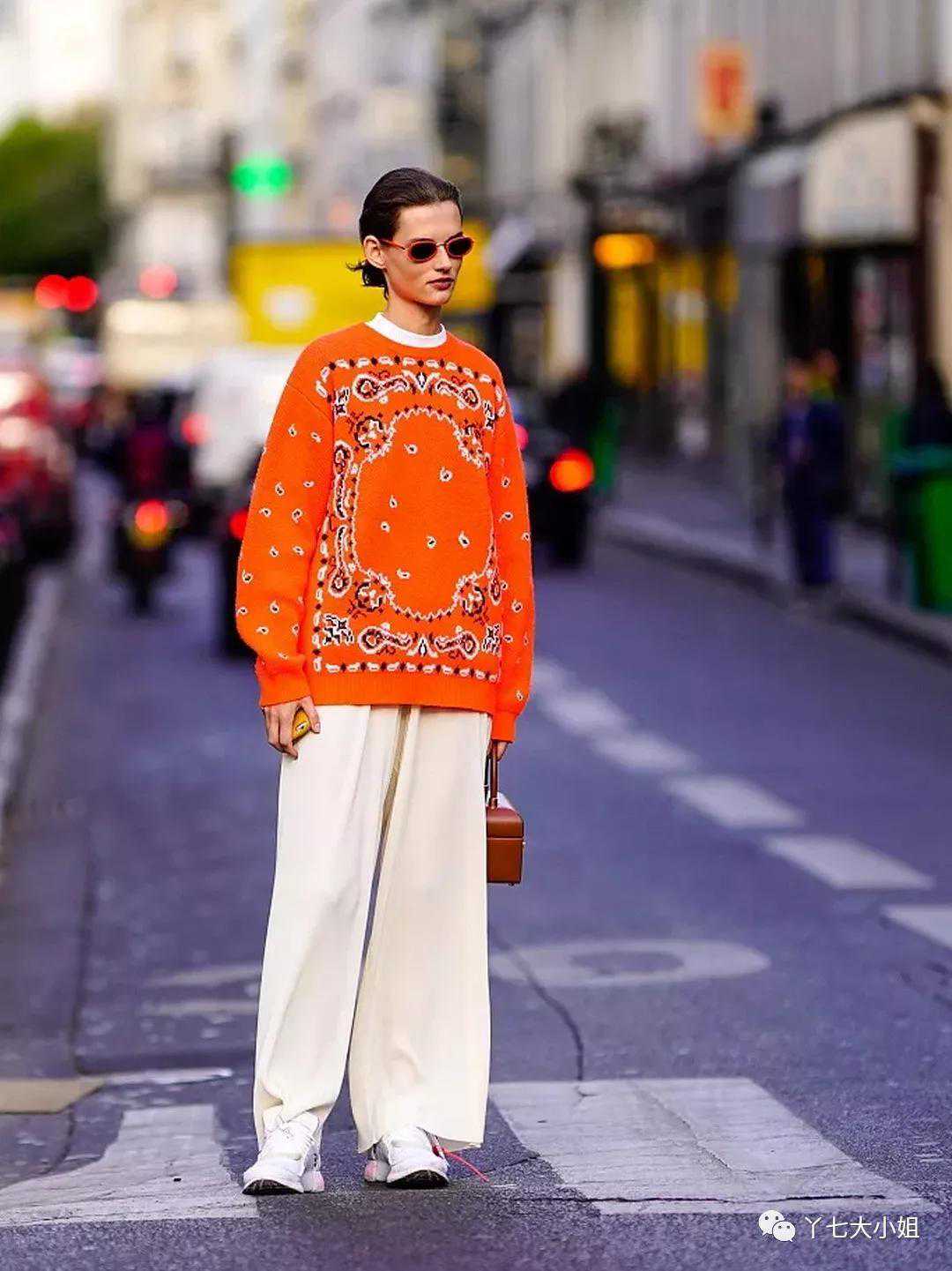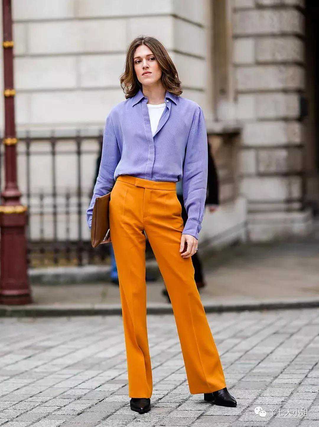 南瓜色的裤子,也是出人意料的美貌惊人,尤其适合用在阔腿裤和烟管裤上,笔直的裤型会突显出南瓜色的质感,又靓又有气场。▼