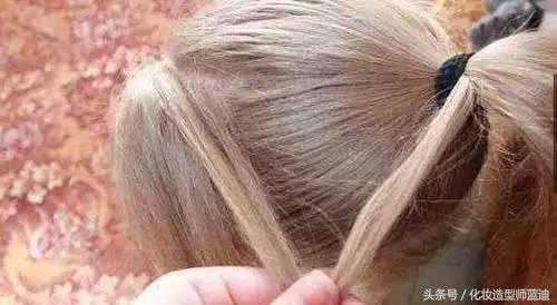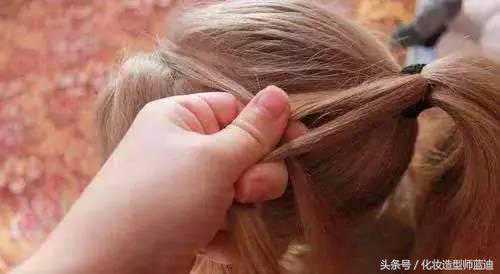 再从马尾辫中分出一股头发,按普通的方法开始编织三股辫。
