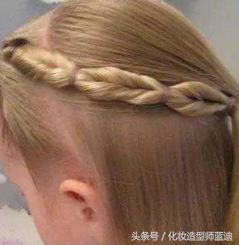 step5:将两条麻花辫沿着发顶的方向固定出好看的造型,无需发饰的点缀就非常的简约大方了。