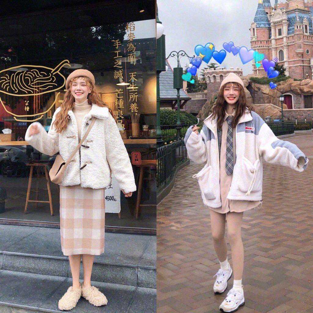 短款夹克很好地拉长了整体的比例,软蓬蓬的羊毛让软妹值瞬间飙升100分
