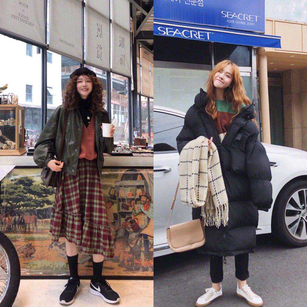 露出一点点内搭下摆作为小心机的点缀,日常出行什么的又简单又好看。觉得冷的话,自觉加上打底裤和外套吧~