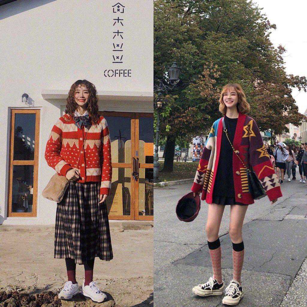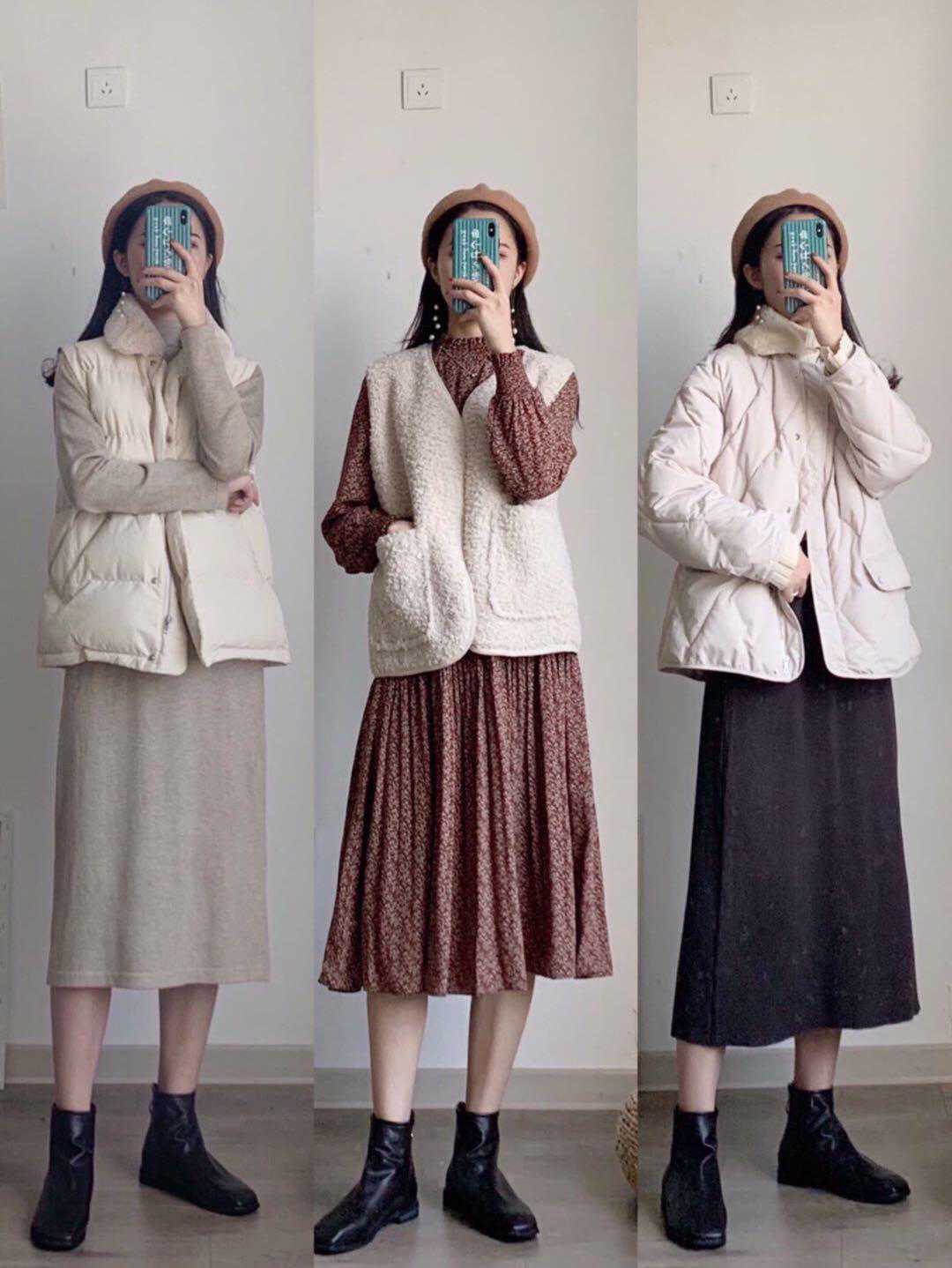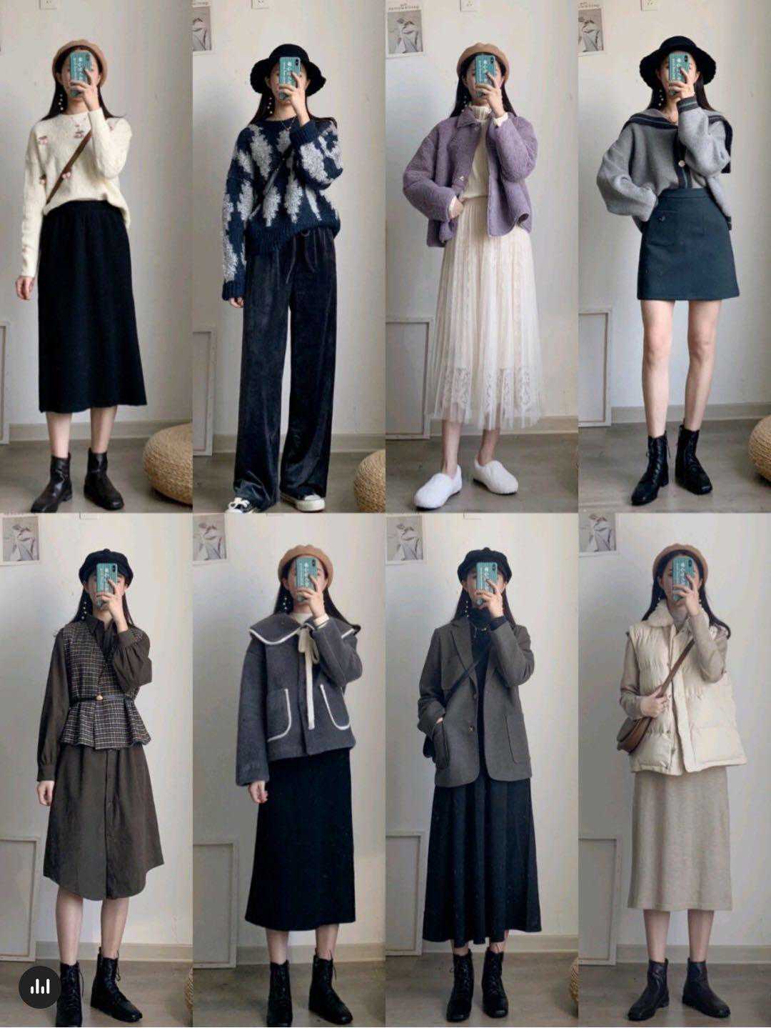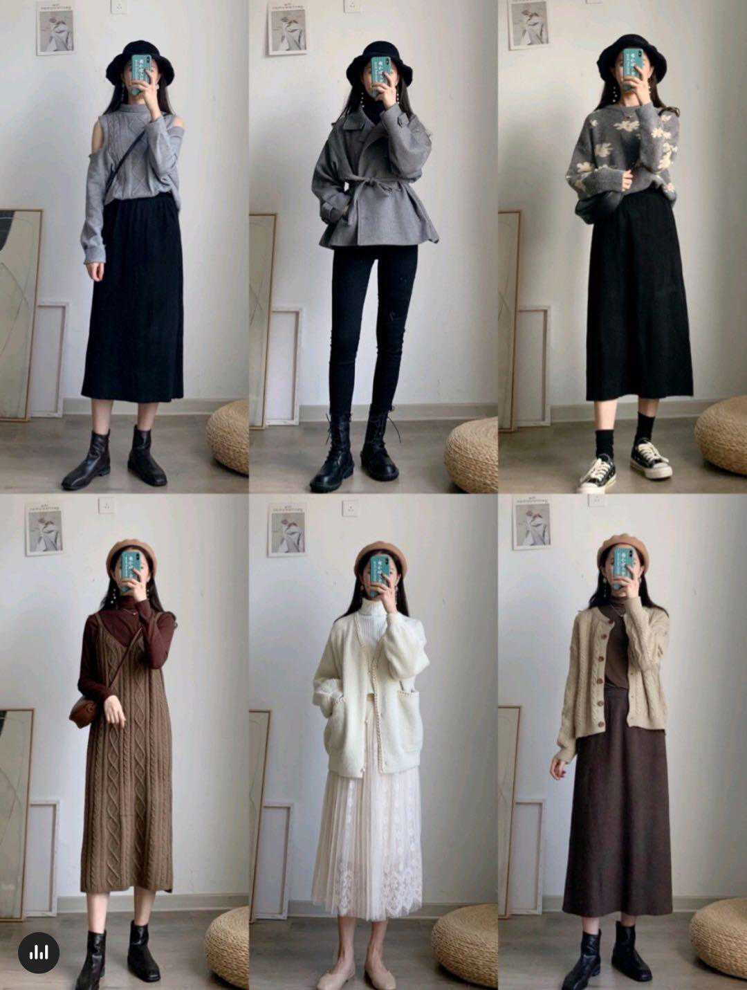 另外还可以参考内搭「针织衫+裙子」的穿搭组合cp,也是我经常选择的穿搭方式,就是大家一定要注意颜色上的互相搭配。