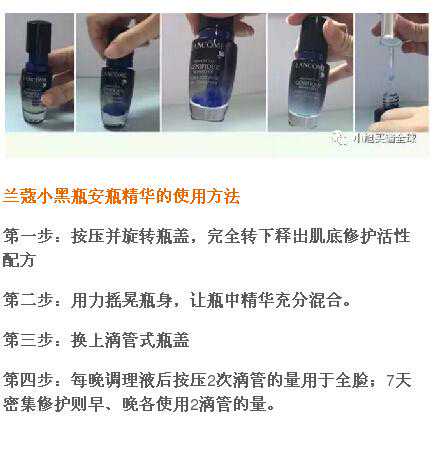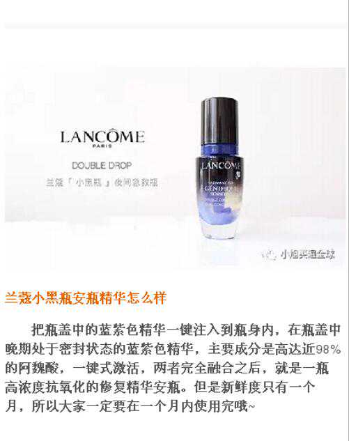 1.个人觉得很好用,可以改善细纹和初期的肌肤问题,改善肤质。之前还有过雅诗兰黛的棕瓶个人还是决定兰蔻的黑瓶更好用一些
