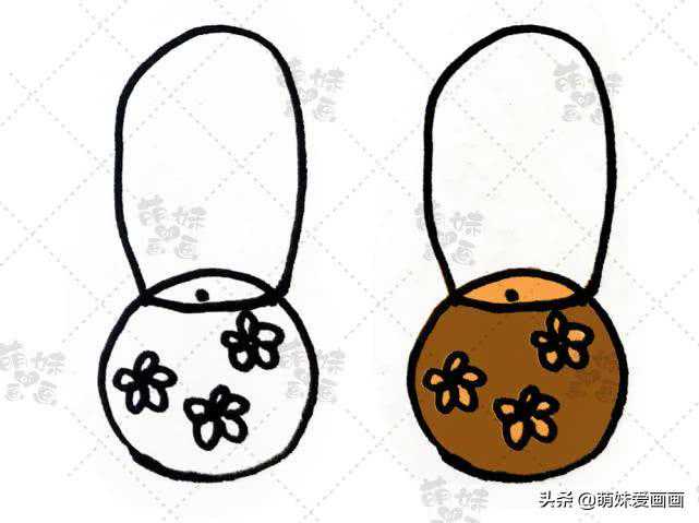 我们可以在包包上面装饰一些可爱的小花朵,然后根据自己的喜好涂上颜色。