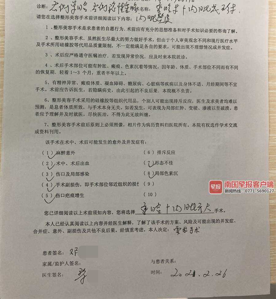 邓女士的整形手术同意书。
