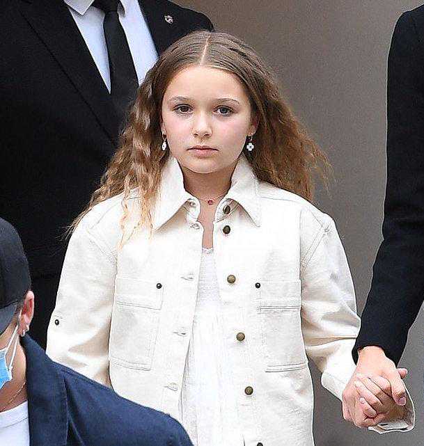 9岁的小七,从小就是时尚潮人,各种国际大牌充斥她的日常,如今更是到了爱美的年龄。留了多年的长发剪短之后,小七如今又是长发披肩了,鱼骨辫与披肩发结合,清爽的发型平衡发福的臃肿笨重感。身穿紫色印花衬衫,造型风格和贝嫂一样带着满满的高冷气质。