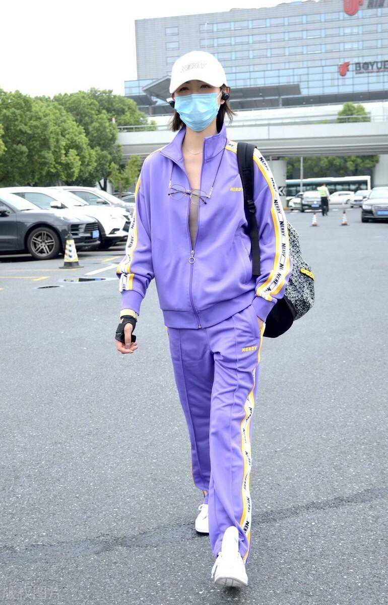 万茜,一袭紫色运动服现身利落干练笑眼盈盈看起来心情超好。