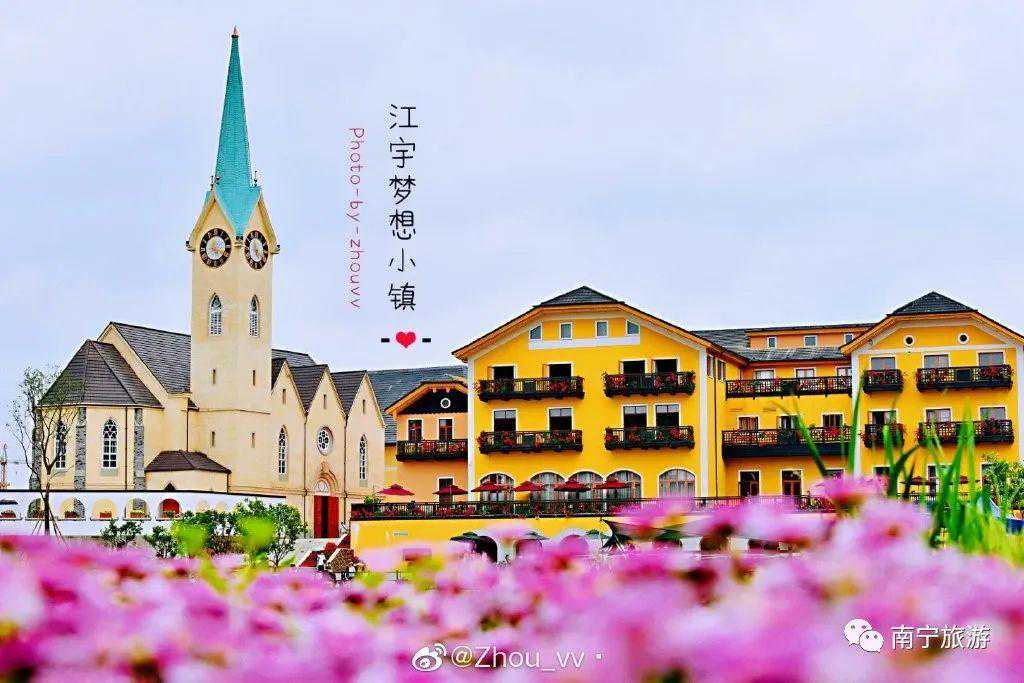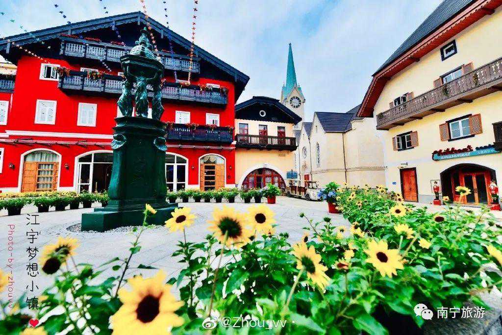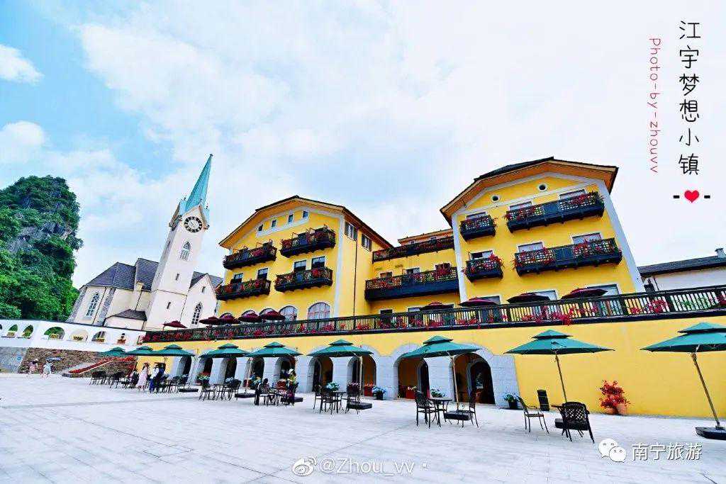 江宇梦想小镇以1∶1还原所有建筑和景观的大手笔,将阿尔卑斯山脚下的哈尔施塔特小镇“搬”过来,这里有湖、有山、有广场、教堂钟楼、婚礼堂,让邕城市民领略到充满浓厚的异域风情。