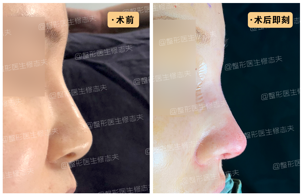 下面这个鼻子,就是做完线雕隆鼻后不理想,所以用半肋鼻综合整形来修复改善。