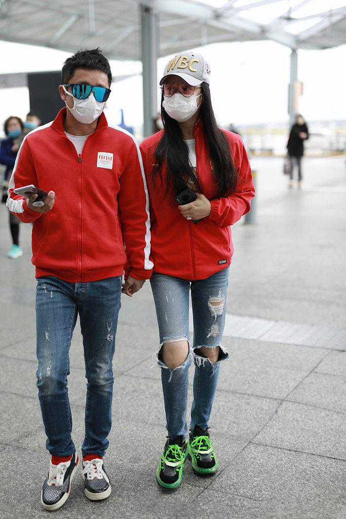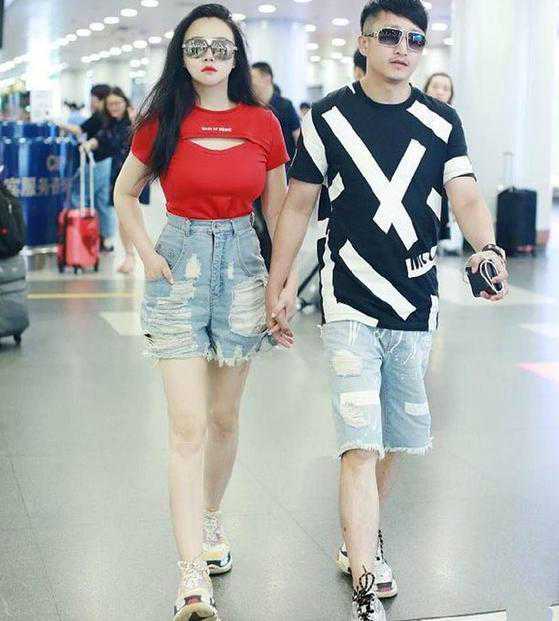 邹市明的这位小娇妻穿衣很有个性,破洞牛仔短裤搭配红色T恤,与老公邹市明穿同款运动鞋,走出了休闲风的神韵,值得一提的是她的上衣,胸前挖去一块露出雪白的肌肤,休闲风变得妩媚起来,更何况她有着3D好身材,这样穿太性感了,身边的邹市明黑色T恤搭配同色牛仔裤,夫妻两个挽手走在机场秀恩爱。