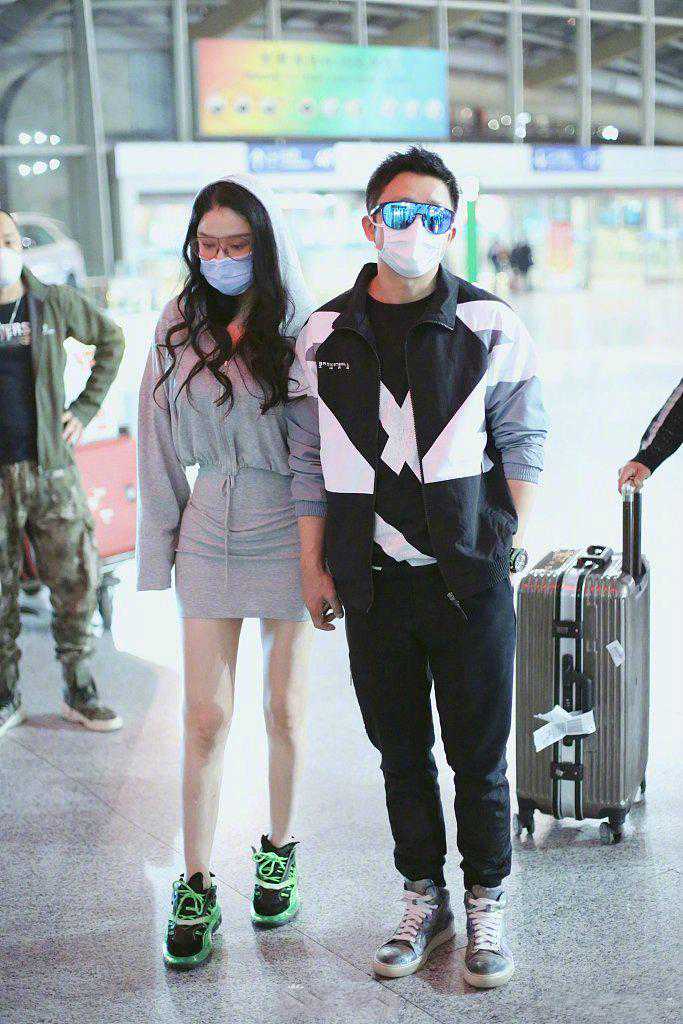 这次两个人依旧是情侣装,服装灰色与黑色搭配,邹市明的鞋子与冉莹颖运动套裙颜色一致,冉莹颖鞋子与邹市明运动装颜色一致,这种你中有我我中有你的穿搭方式更加高级,秀恩爱的效果一点也不比那种完全相同的情侣装差。