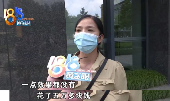 施女士:“他们没给我做好,他们当时说我脸下垂,要求我做尤美提跟玻尿酸,就导致到现在,一点效果都没有(花了多少钱)花了五万多块钱。”