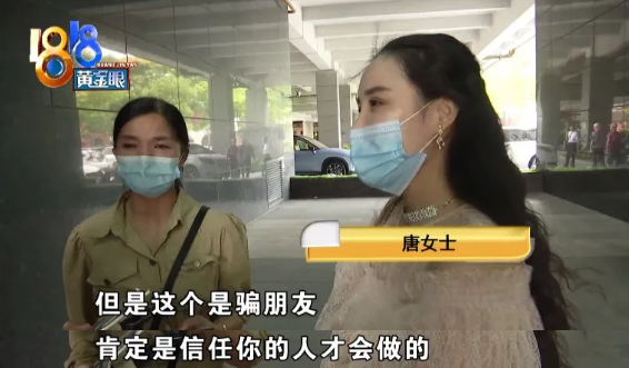 唐女士:“(十多年就为了几万块钱就,你也不愿意这么干吧)我肯定不会啊,这个是骗朋友,肯定是信任你的人才会做的,然后我肯定不会这样子。”