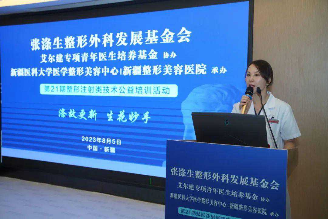 2023年8月5日,“张涤生整形外科发展基金会整形注射类公益培训”在新疆整形美容医院六楼学术报告厅成功举办。本次培训活动邀请到上海交通大学医学院附属第九人民医院整复外科主任医师、张涤生整形外科发展基金会副秘书长罗旭松教授,中国医学科学院整形外科医院面颈整形科主任医师、硕士生导师王太玲主任,上海交通大学医学院附属第九人民医院整复外科副主任医师王智超教授,主治医师陈刚博士,上海九院主治医师、外科学博士方斌,艾尔建学苑、医学教育经理宫佳艳,新疆整形美容医院院长余萍等国内整形外科领域知名专家及全疆各级医疗机构40余名青年医师共同参与。