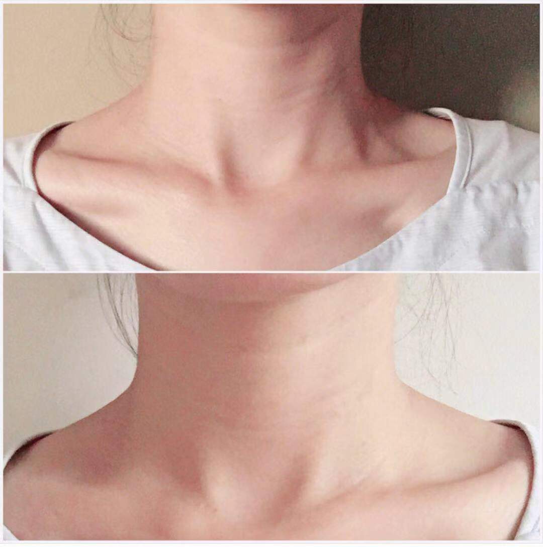 刚开始用完后,虽然细纹还是会有啦,但明显感觉淡了些。我坚持用了大概六七次吧,最明显的效果就是脖子白了一圈,皮肤也变得更细腻了。
