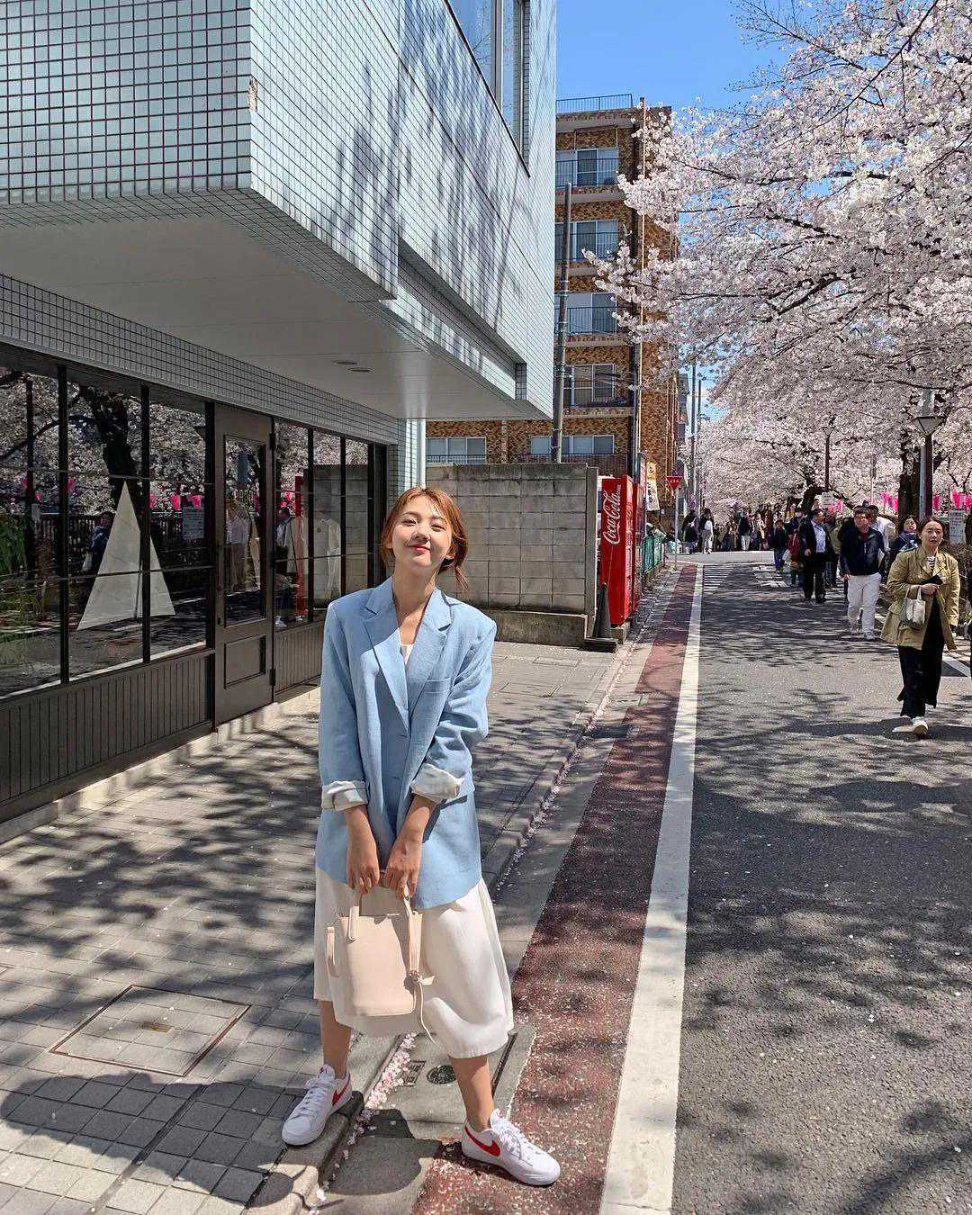 说到小西装为什么要提到她呢?因为如果你经常逛她ins的话就会发现,欧尼对小西装真的很情有独钟!她所有的穿搭里,小西装的出镜率可以说非常高了。