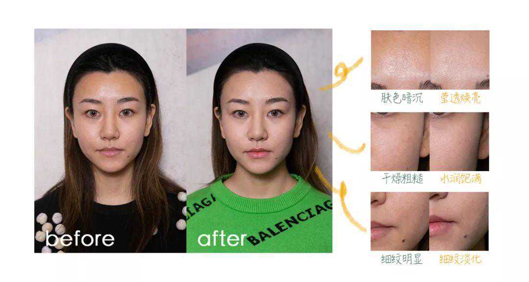 我自己照镜子的时候,能感觉到皮肤比以前更细腻,面颊处一些“年久失修”的干纹是真的变淡许多,看起来就会更加年轻。皮肤可见可触地弹性变好,更加饱满紧致。而且这个月虽然气温起起伏伏,但皮肤一点没出状况,非常稳定且保湿,上妆都变得更容易。