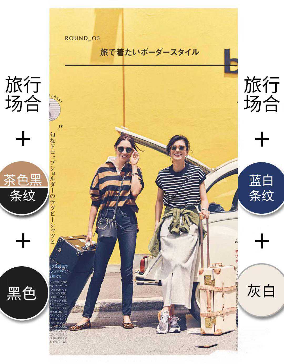 如果想要旅行度假,我们可以选择轮廓感比较大的茶色黑条纹,累搭配高腰的小黑裤,有一种清爽帅气的美,同时显瘦效果也非常棒。