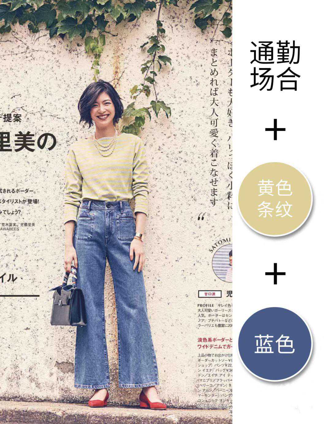 通勤上班的穿搭,自然也可以用条纹衫来凹造型呀。清新的黄色条纹衫,色彩更加柔和,有一种大气舒适的美。