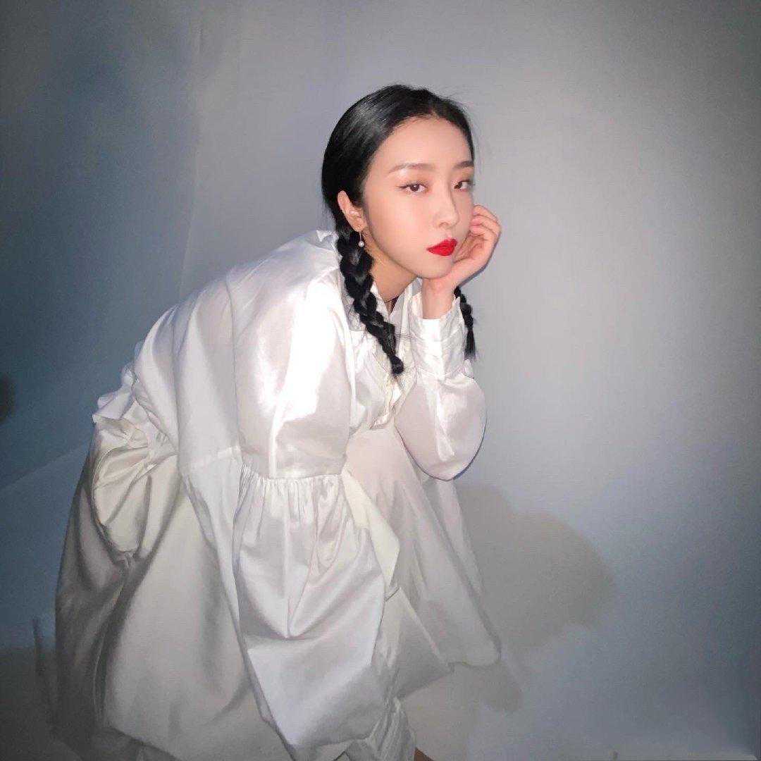 这导致她如果发型选择不当,就会出现这种现象(如下图),整个头颅比例不协调,完完全全遮盖住了优势,拉低了整体颜值。