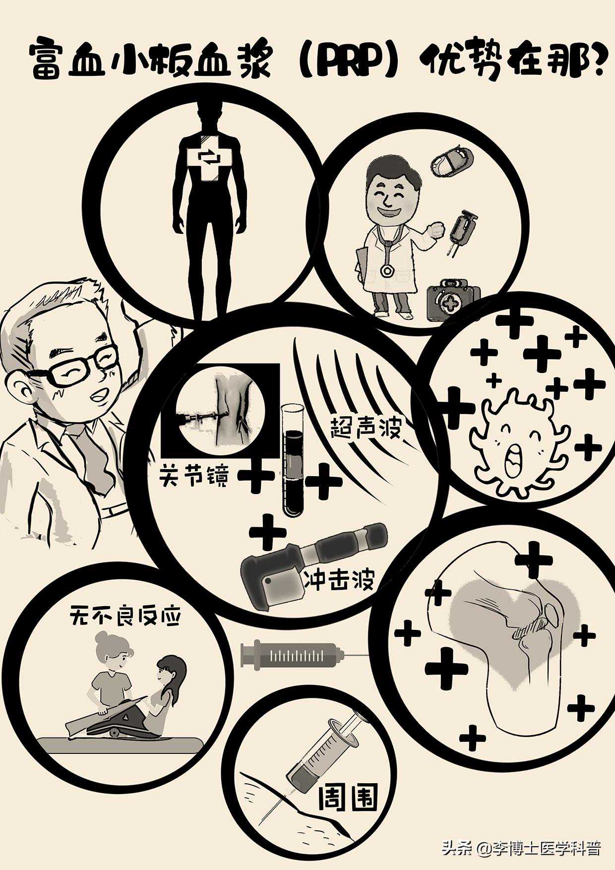 近日,张大娘的膝关节炎又犯了,上下楼很费劲,走路一瘸一拐,来到运动医学门诊找到李博士,问李博士:我最近听他们说治疗膝关节炎有新的技术了,叫什么“PRP”,我能用吗?李博士说,根据你X线和MRI并且有退行性表现的症状,对于你这种中度骨关节炎是可以用的。今天李博士就和大家科普一下富血小板血浆(PRP)技术。