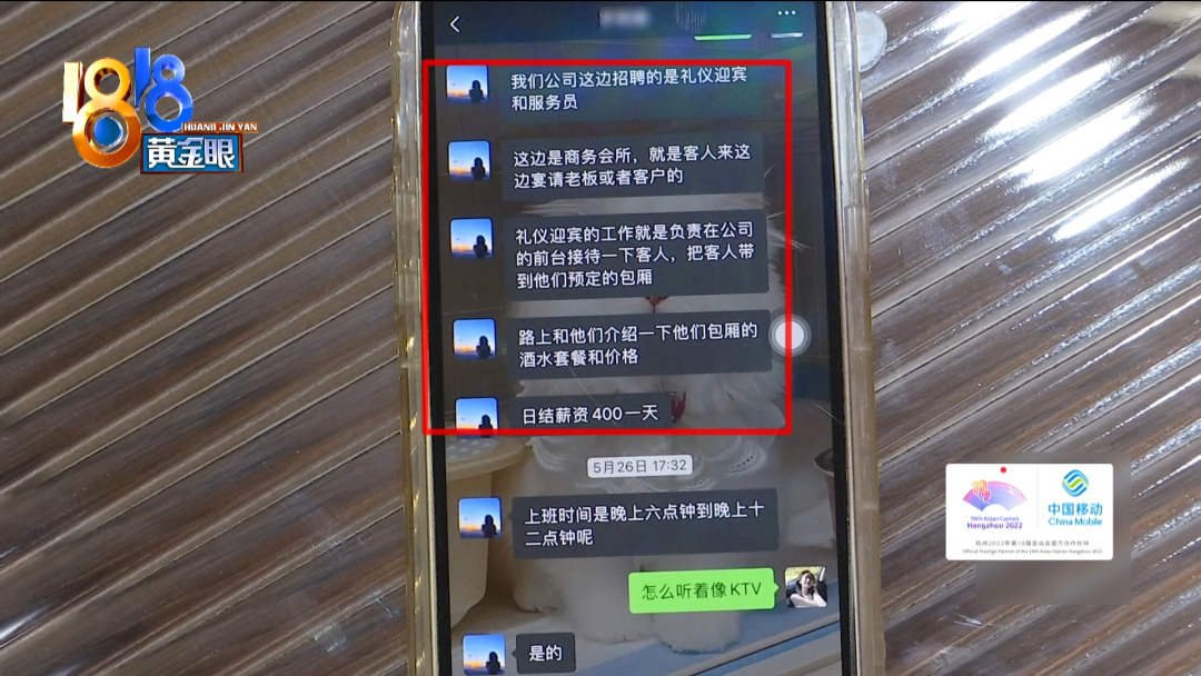 之后,又有一个微信名叫“你脸红了吗”的人,加了李女士微信。此人自称“小娟”,告诉李女士,招聘的是礼仪迎宾和服务员,只是把客人带到包厢,介绍一下包厢的酒水套餐和价格,日结薪资400元一天。