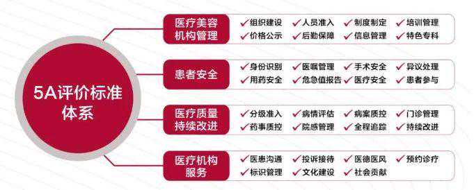 《医疗美容机构评价标准》(即”AAAAA”等级评定)是中国整形美容协会受国家卫健委委托,以《三级综合医院评审标准(2011版)》和《专科医院评审标准》为蓝本,是目前医美行业最具权威的医疗评级标准。