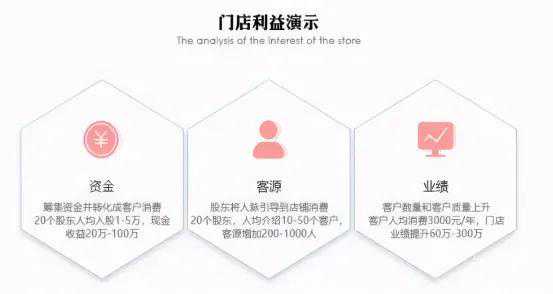 分红股东获得收益的方式也很简单,即把优惠券卡包分享给自己好友,只要有人通过这些卡包到店消费,那么分红股东就能获得相对应的收益,消费金额越大,收益就越大,只要不退股,那么股东就能享受终身收益。但是股东不占用股权、不参与管理,不负责门店的盈亏,即共享经济中所谓的“仅拥有使用权”。同时,对于分红股东而言,他们或者身边的亲朋好友都有用餐的需求,股东在帮助他们建立联系后,就可获得分红收益。商家通过来店可以增加客流量、提升业绩、减轻管理运营成本;股东通过可以合理安全配置自己的资金,收益分红。这样,所有用户都能实现价值最大化。