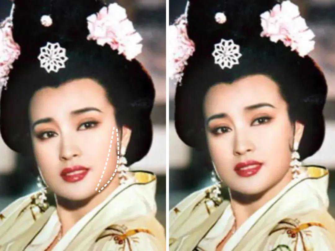 当初毛戈平老师给赵露思修容时正是运用了这个方法,顿时肉脸变鹅蛋脸,脸也小了很多。