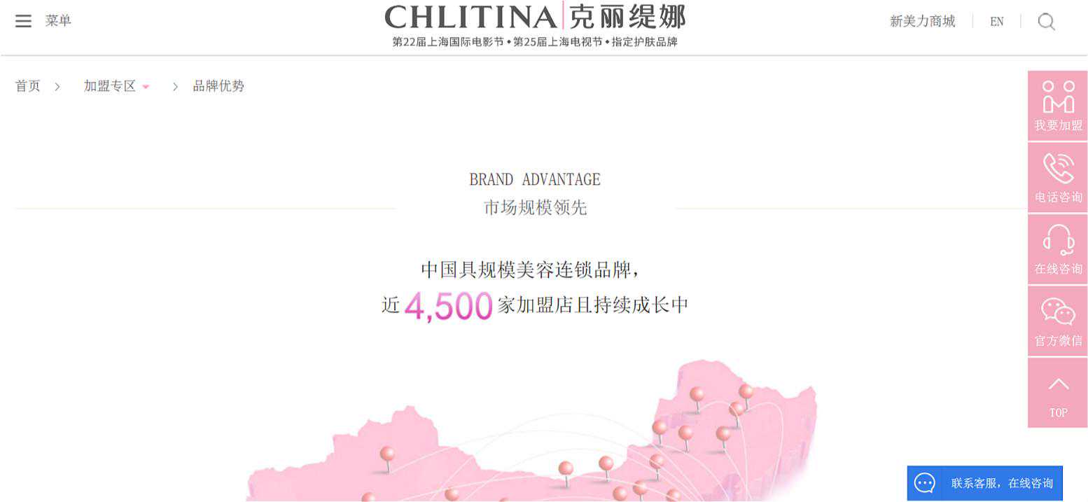 ”克丽缇娜“官方网站显示,加盟店多达4500多家。