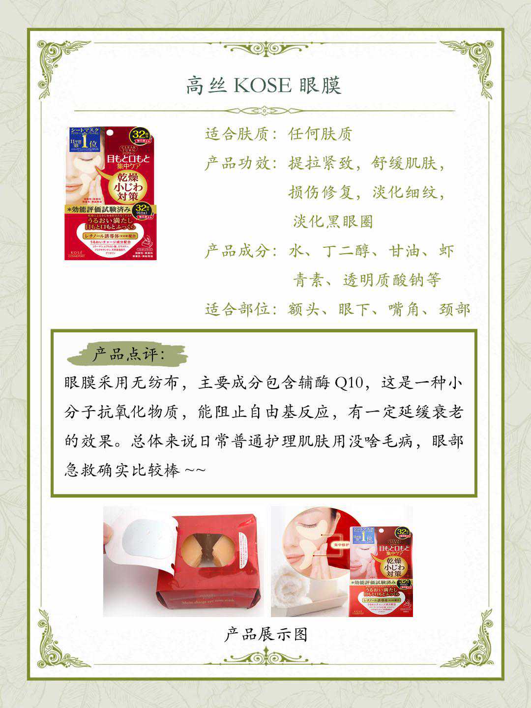 这款眼膜性价比还不错,而且还有特别,一般的眼膜只能用15~25分钟,时间过长会吸走肌肤自身的水分,而这款眼膜可以连续使用6~8个小时,也不会倒吸皮肤的水分,因为眼膜中,有独家专利,采用纯植物亲水凝质地,整夜的修复过程,月牙的形状,贴在眼部下方,针对眼部细纹、皱纹、眼袋和黑眼圈。
