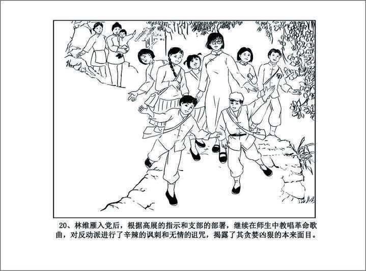 林维雁被学校除名,回到寝室,同学们争相问她:“你是民盟还是中共?”她平静地回答:“我什么都不是,我是群众。”接着她挺起胸膛,掷地有声地说:“回去我照样干,加入共产党是我的奋斗目标!”同学们以崇敬的目光送她踏上新的征途。