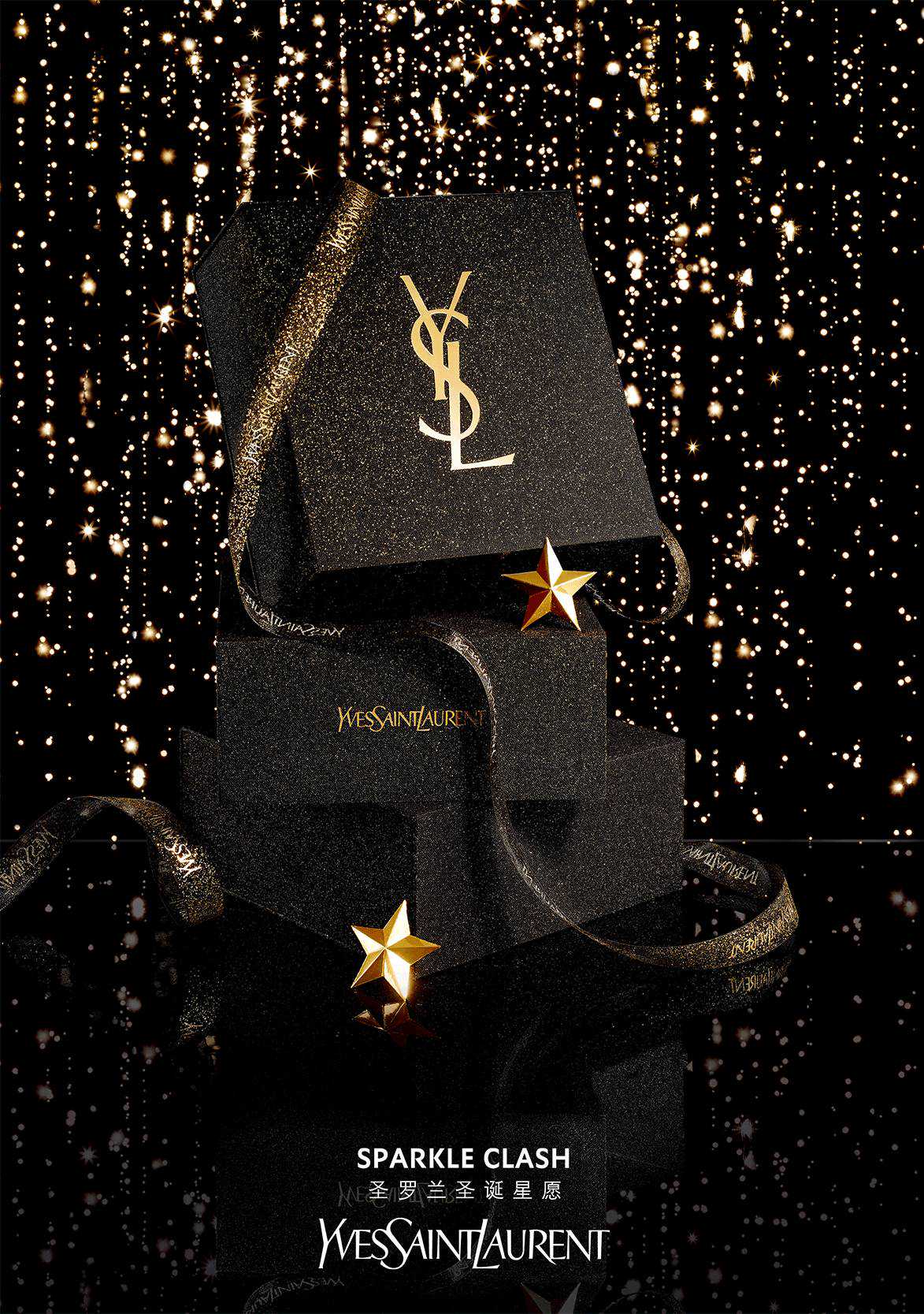 今年的圣诞限量系列叫“SPARKLECLASH圣罗兰圣诞星愿”,就是为了和你一起做一场金光闪闪的少女梦✨