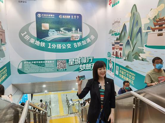 农业银行湖南省分行长沙分行副行长姜立峰:长沙城市地铁无界信用卡以深绿色为主色调,“农行绿”结合“绿色出行”,农行助力星城人逐梦畅行。