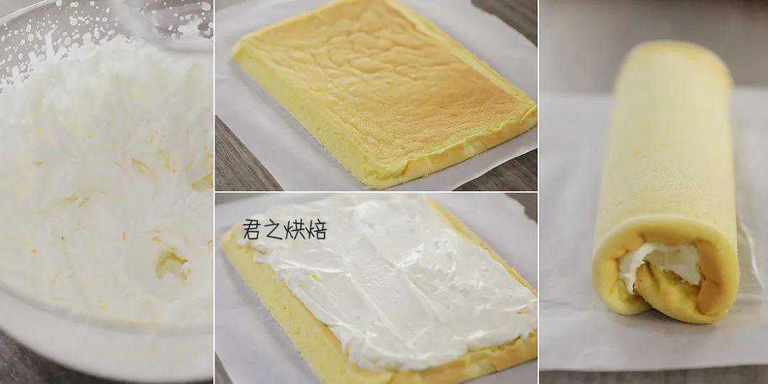 蛋糕卷配料:低筋面粉80克,细砂糖60克(蛋清用)+20克(蛋黄用),植物油50克,牛奶(或水)50克,鸡蛋4个,盐2克。