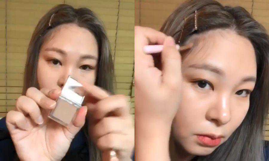 小姐姐这边示范的是用雾面眼影,将发际线光秃秃的地方填补起来,这样才不会看起来有头发很少的感觉。