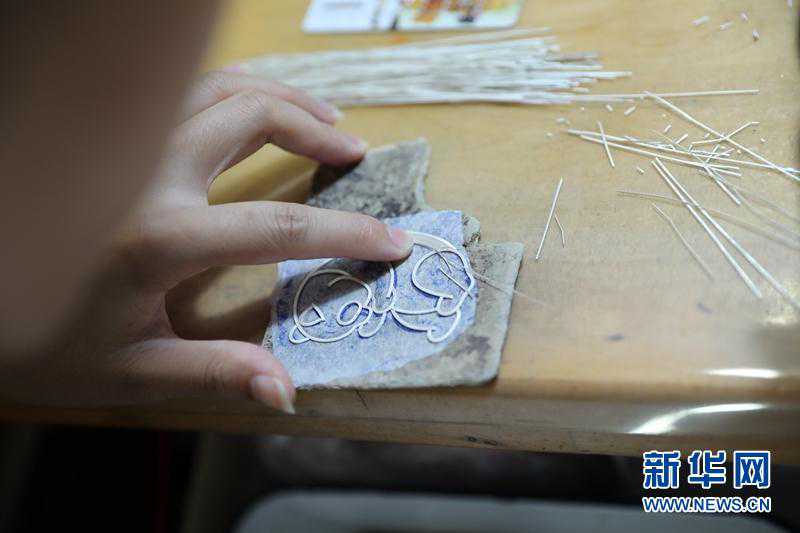 有了轮廓线,艺人们会将各种形状的花丝填在里面,构成精美的图案,这个步骤叫做填丝。