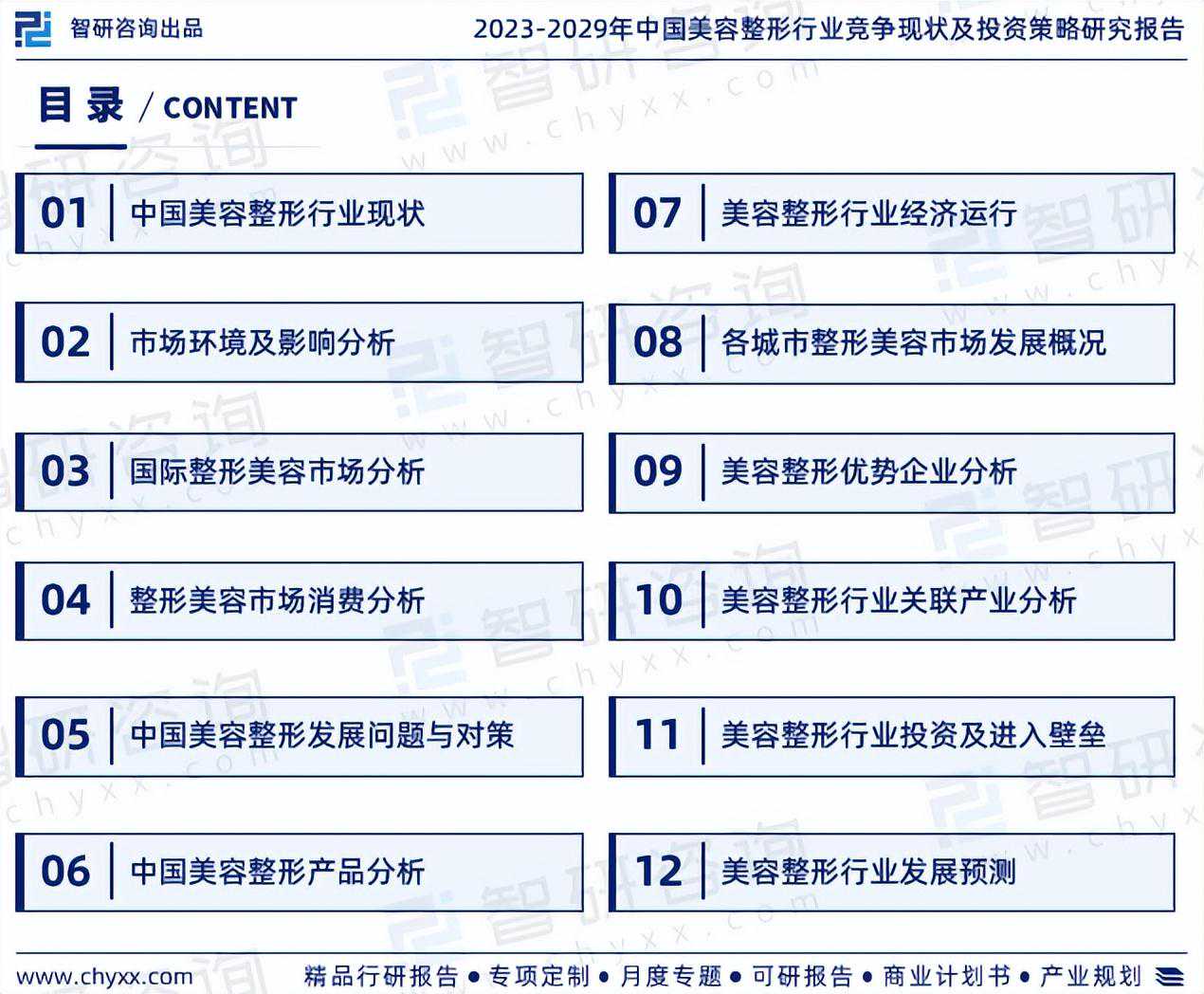 由智研咨询专家团队精心编制的《2023-2029年中国美容整形行业竞争现状及投资策略研究报告》(以下简称《报告》)重磅发布,本报告由智研咨询行业研究团队联合撰写,经专业的报告编撰团队反复修改打磨,最终得以呈现。