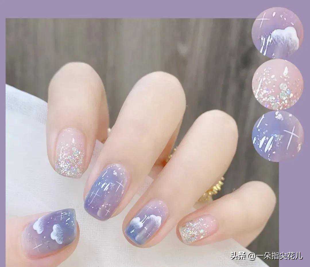 第七款:晕染+渐变+彩绘。梦幻紫色加云朵彩绘,仙气又可爱。