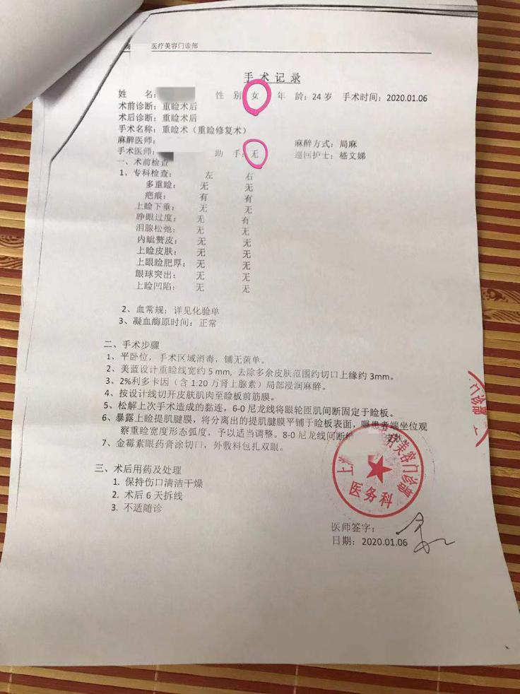 余西走后,王先生向助理提出看病历的要求,助理询问王先生是否携带了身份证,看到王先生点头后,紧接着却说没提前预约不能拿病历,让王先生年后再去拿。后面半年王先生去医院找他们复诊,在医院等了许久,好不容易等到余西出现,“余西说与他无关,让我找眼科,微信也把我删了,助理也是一直推脱让我等。”无奈之下王先生把有关问题投诉到了徐汇区卫健委。“病例上性别是错的,助手也没有写。我现在眼睛通红干痛火辣,视力下降严重,看东西散光重影,还找不到医生修复,而且也没有钱去治疗了,我现在希望医院给我退费或者找医生给我重新修复。”王先生说。记者随后拨打了徐汇区卫健委的电话咨询,据值班人员介绍,“监管部门有一个病历书写规范,如果说按照病历书写规范要求需要写,他没写,那肯定是违规的。”